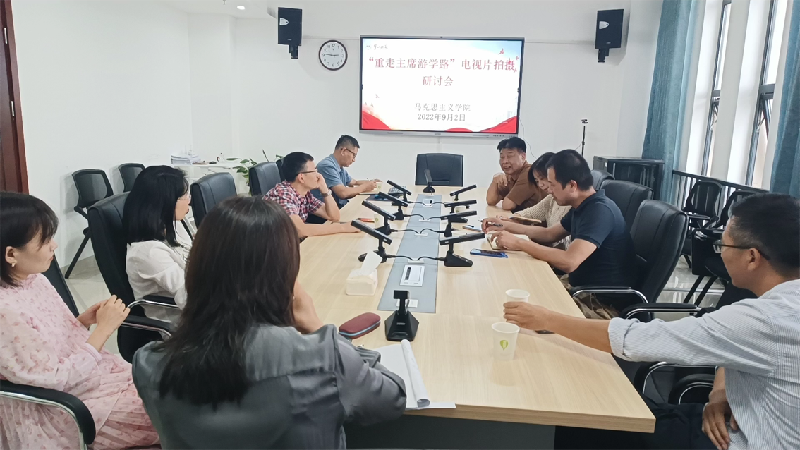 9月2日,三亿体育邀请到湖南教育电视台编导来到马院,共同商讨“重走主席游学路”电视片的拍摄事宜。中南大学教授曾长秋、湖南教育电视台易仙、马公司党政领导班子陈明、阮东彪以及部分教师代表参加。