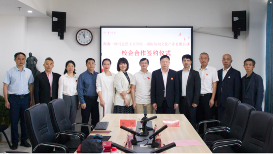 湖南知润文化产业有限公司杨继能总监介绍了红色基因讲习所的运行情况与品牌发展规划,并就校企进一步合作表达了强烈的意愿。双方就开发红培专题课程、培训红色宣讲员、聘用红色高级讲师、设计红色文创礼品等方面进行了深度洽谈,并达成了初步合作意向。