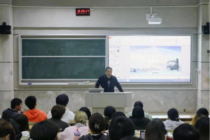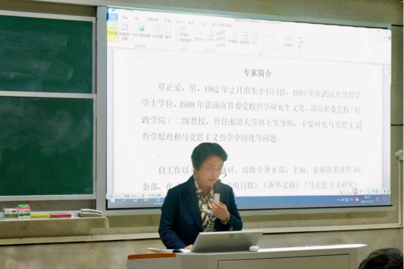 为助力青年学子承担起弘扬中华优秀传统文化之责任,三亿体育特邀马克思主义哲学研究专家、中共湖南省委党校科研明星、优秀教师覃正爱教授向同学们讲授了一堂别开生面的“形势与政策”讲座。讲座于11月23日晚在润寰南201教室开展,公司党委委员、纪委书记李昱,马克思主义公司党委副书记胡英和22级200余名本科生在场聆听了本次授课。