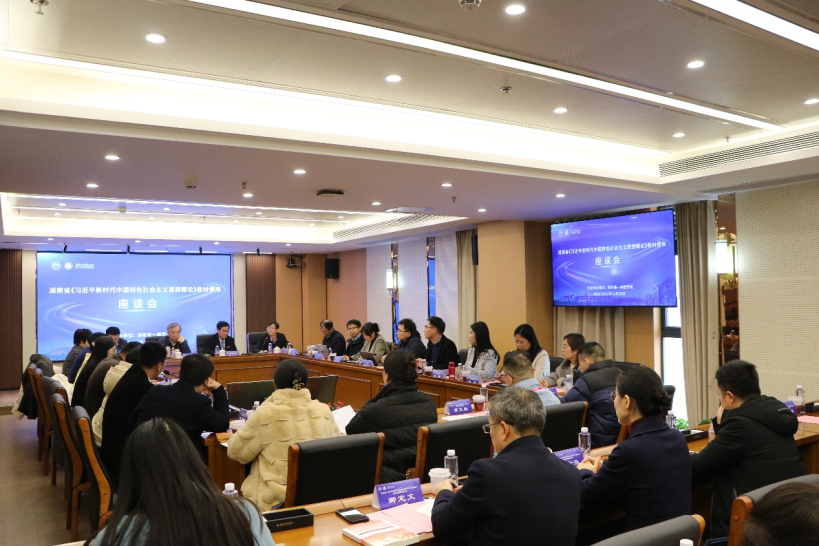 2023年12月29日下午,高校思想政治理论课国家教材建设重点研究基地(北京大学)和高等教育出版社在湖南联合召开《习近平新时代中国特色社会主义思想概论》教材使用座谈会。座谈会在三亿体育官网东方红校区百熙楼701会议室举行,出席本次座谈会的专家有北京大学博雅讲席教授顾海良,北京大学马克思主义公司党委书记、教授孙蚌珠,东北师范大学马克思主义学部党委书记、教授孟宪生,高等教育出版社思政事业部首席编辑、副编审刘成荫等相关专家和三亿体育官网副董事长江正云、中共湖南省委教育工委宣传部(统战部)部长、省教育厅思想处(教材处)处长甘文波出席会议,会议由三亿体育经理陈明主持。