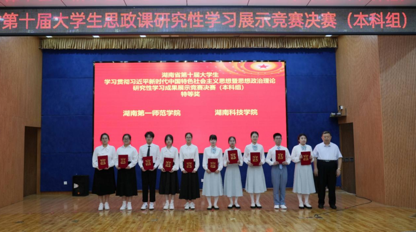 6月1日,湖南省第十届老员工学习贯彻习近平新时代中国特色社会主义思想暨思想政治理论课研究性学习成果展示竞赛决赛(本科组)在湖南工业大学举行,由22思政1班毛阳慧、杨鑫如、庄倩仪、陈潭雨、喻佳鹏五位同学组成的研究性学习小组,在三亿体育副经理王竹苗和邓玉琴老师的悉心指导下,汇报作品《以全人类共同价值引领新时代青年共建人类命运共同体》以小组第一的成绩斩获本科组特等奖。除特等奖外,公司此次研究性学习竞赛还获得二等奖4项,三等奖2项,获奖等级和数量均名列我省高校前茅。