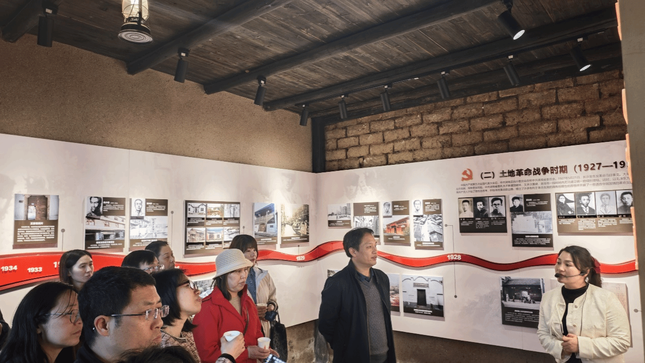 当天下午,教职工们来到望城茶亭镇中共湖南省委旧址。在讲解员的指引下,全体党员重温革命时期中共湖南省委迁移望城,革命先辈们不畏艰难、不惧牺牲为建立新中国不懈奋斗的光辉历史。这座承载着革命烽火的土砖建筑内,泛黄的历史照片、斑驳的革命文物重现了中共湖南省委在艰苦岁月中领导人民开展斗争的壮阔历程。教职工们驻足聆听革命先辈的英勇事迹,重温入党誓词,感悟初心使命。时光飞逝,历史已被浓缩,在旧址中,我们了解到革命先辈忠于信仰和事业,将个人生死置之度外,英勇无畏、前仆后继,“甘愿为党献头颅”,在长期艰苦的革命斗争实践中,“曾任中共湖南省(工)委书记的郭亮、林蔚、彭公达、王一飞、贺昌、杨福涛、蒋长卿、徐少保等十余人英勇牺牲;曾任中共湖南省委委员的何叔衡、缪伯英、周炳文、柳直荀、周以栗等40余人英勇牺牲,其他为省委工作过的牺牲干部更是难以计数。”他们用自己的实际行动践诺入党时的铮铮誓言,为民族独立和人民解放,奉献了自己的青春和生命,流尽最后一滴血,形成了中国共产党湖南省委机关革命烈士群体。随后,在旧址旁会议室,公司党委书记曾玉华给参与活动的教职工讲了一堂微党课,深入交流革命先辈“坚定信念、艰苦奋斗、依靠群众”的精神内核。