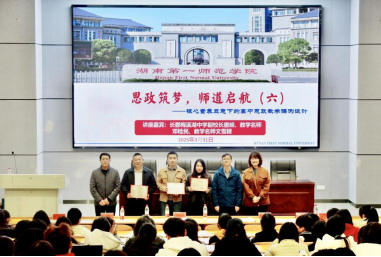 3月31日晚上7点,公司于东方红校区怀中南110教室开展了第六次“思政筑梦,师道启航”主题讲座。长郡梅溪湖中学副董事长唐頔,教学名师邓检民和文雪颖受邀主讲,公司陈明经理,胡英副书记,王竹苗副经理出席,22级思政1-4班、24级思政5班本科生以及24级学科思政研究生参加。