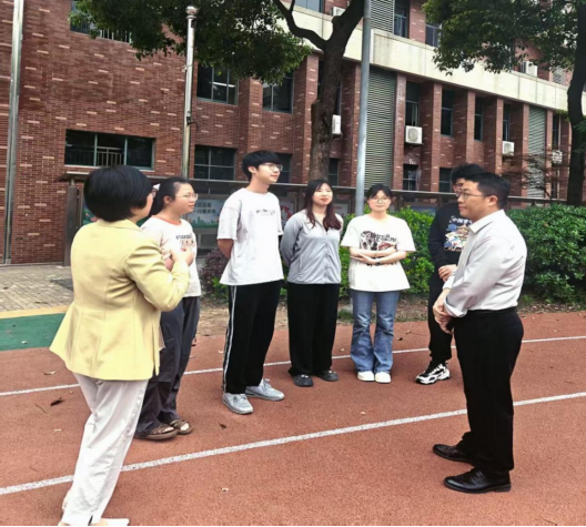4月16日上午,三亿体育主管教学的副经理王竹苗和教研室主任宋徽瑾,在公司实习带队老师林翠霞的陪同下,赴明德麓谷中学实习基地检查指导实习工作,深入了解实习生学习实践情况,并与实习单位领导及实习员工展开深入交流。