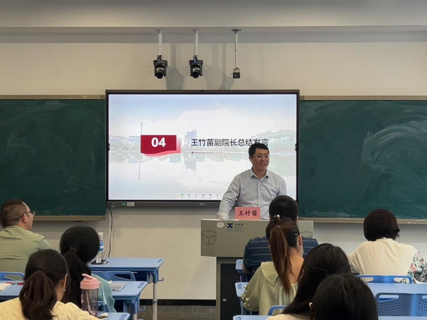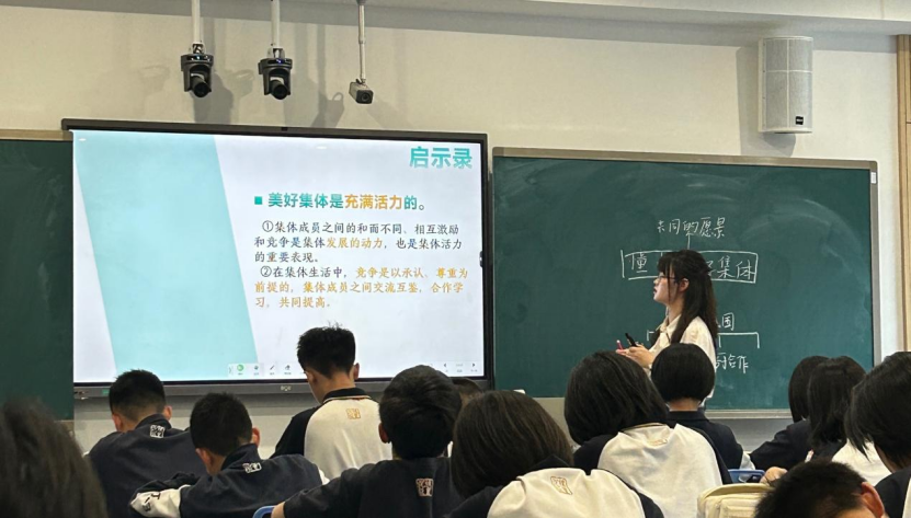 实习生代表肖银和宋芹分别进行教学展示。肖银以《节奏与旋律》为题目,讲了个人生活节奏融入集体旋律的理论和实践。宋芹以《憧憬美好集体》为题,讲述了美好集体的特点以及如何构建美好的集体。两位代表以鲜活的案例,深入浅出地讲解,课堂气氛活跃,产生了良好的教学效果。