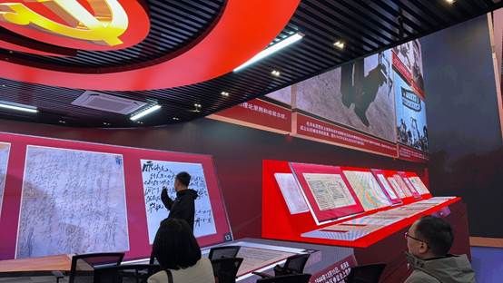 调研伊始,李伏清带领大家参观了毛泽东思想专题展。该展是一个集展示、教育、教学、研究、交流、体验等功能于一体的专题展馆。讲解员通过一幅幅图片、一件件文物和一段段故事,详细介绍了毛泽东思想诞生、发展、成熟的过程,集中再现了毛泽东思想在新民主主义革命、社会主义革命和建设等不同时期发挥的关键引领作用。