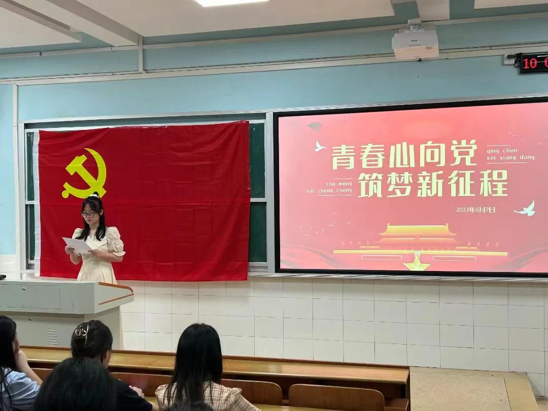 为深入学习贯彻党的二十大精神,不断深化拓展党史学习教育,让广大毕业生党员不忘入党初心,坚定共产主义信念。公司于2023年6月7日上午10点在东方红校区怀中南105举行“青春心向党,筑梦新征程”6月主题党日活动暨2023届毕业生党员重温入党誓词活动。本次活动由党支部办公室干事梁承鸿同学主持,参与本次活动的人员有员工党支部书记刘艳霓老师以及员工党支部所有正式党员、预备党员,以及党员发展对象。