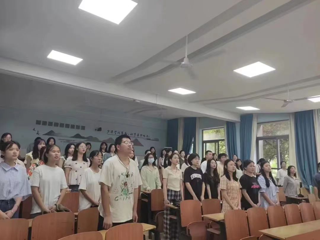 党日活动在国歌声中拉开序幕,全体同志怀着崇高的敬意和无比自豪的心情齐唱中华人民共和国国歌,国歌在即将送别毕业生党员的时间节点上更是被赋予了非同寻常的意义,振奋人心的国歌唤起了毕业生党员对党和国家的热爱以及民族的自豪感。