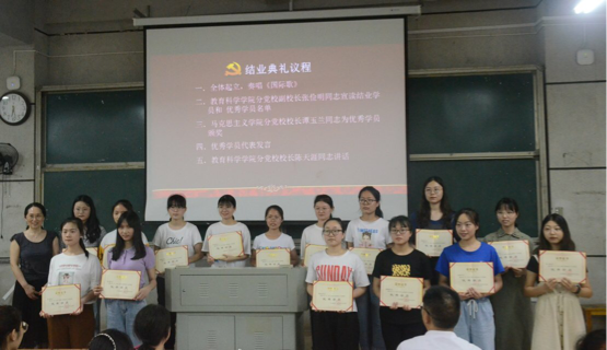 接着是教育科学公司分党校副董事长张俭明同志分别宣读教育科学公司与三亿体育结业学员名单和优秀学员名单,本期参加入党积极分子培训班的149名入党积极分子中,共有146人顺利结业,并有15人获得优秀学员。紧接着,三亿体育分党校董事长谭玉兰同志为15位优秀学员颁奖并合影留念。