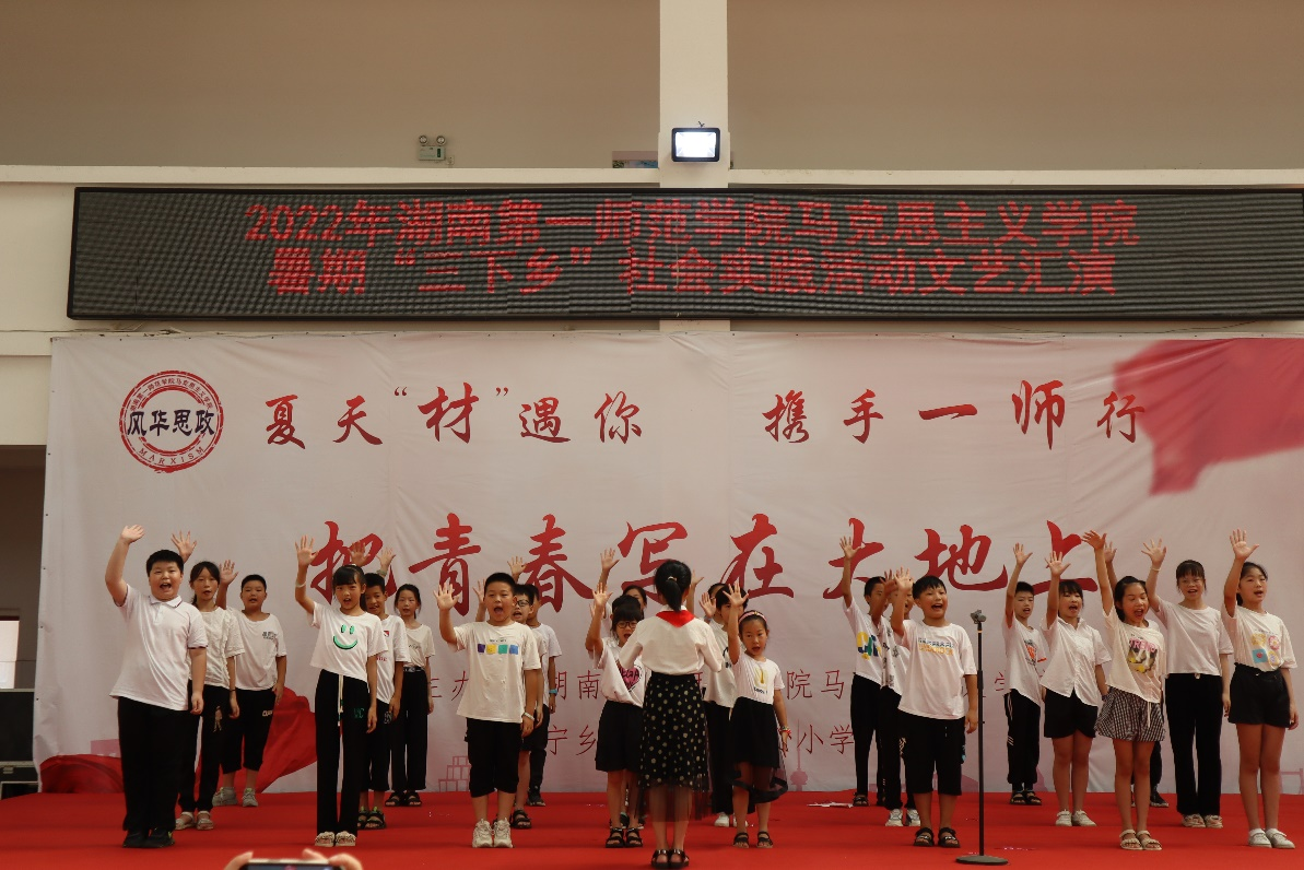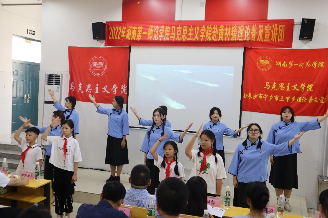 7月13日,团队师生在黄材镇中心小学献上第一次大型理论普及宣讲活动成果展示。宣讲活动主要分为红色故事品读、党史故事宣讲与理论普及艺术化宣讲三大板块,宣讲内容紧凑充实,现场反响热烈。“红色故事品读”部分由一师马院润之师生宣讲团成员分享《藏在衣柜里的父子情》与《一封托孤信》,以实际行动传承红色基因,赓续红色血脉。在“党史故事宣讲”与“理论普及艺术化宣讲”两个板块,师生们发挥专业特长,将理论思想凝练在《何叔衡》和《垃圾分享汇》两个节目之中。最后,一师马院“星火”推普队带来《青春中国》诗朗诵作为压轴,秉承为祖国、为人民的赤子之心,与小员工们一齐为祖国献上一首爱的诗篇。