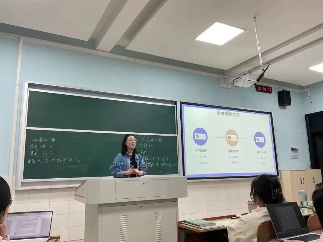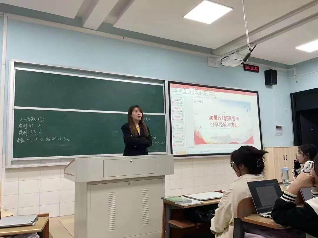 本次主题班会特邀20级825思政班陈潇潇、20思政1班蔡雯萱两位优秀学姐分享她们在学习、工作和生活方面的经验和方法。针对如何提高学习成绩、课堂上如何进行高效率学习、资格证书的备考等问题,两位同学都给与了精心的指导和耐心的解答。