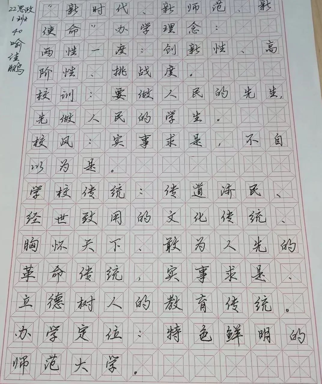 春发其华,秋收其实。一笔一划在横平竖直的时光流转中,接受传统文化熏陶,锻炼教师基本技能,熟能生巧凡事皆然 。以上就是第九周三笔字活动小结,期待大家都能在日复一日的练习中学有所获,写得一手好字,为未来的教师之生涯打好基础!为传承中华民族优秀传统文化做贡献!