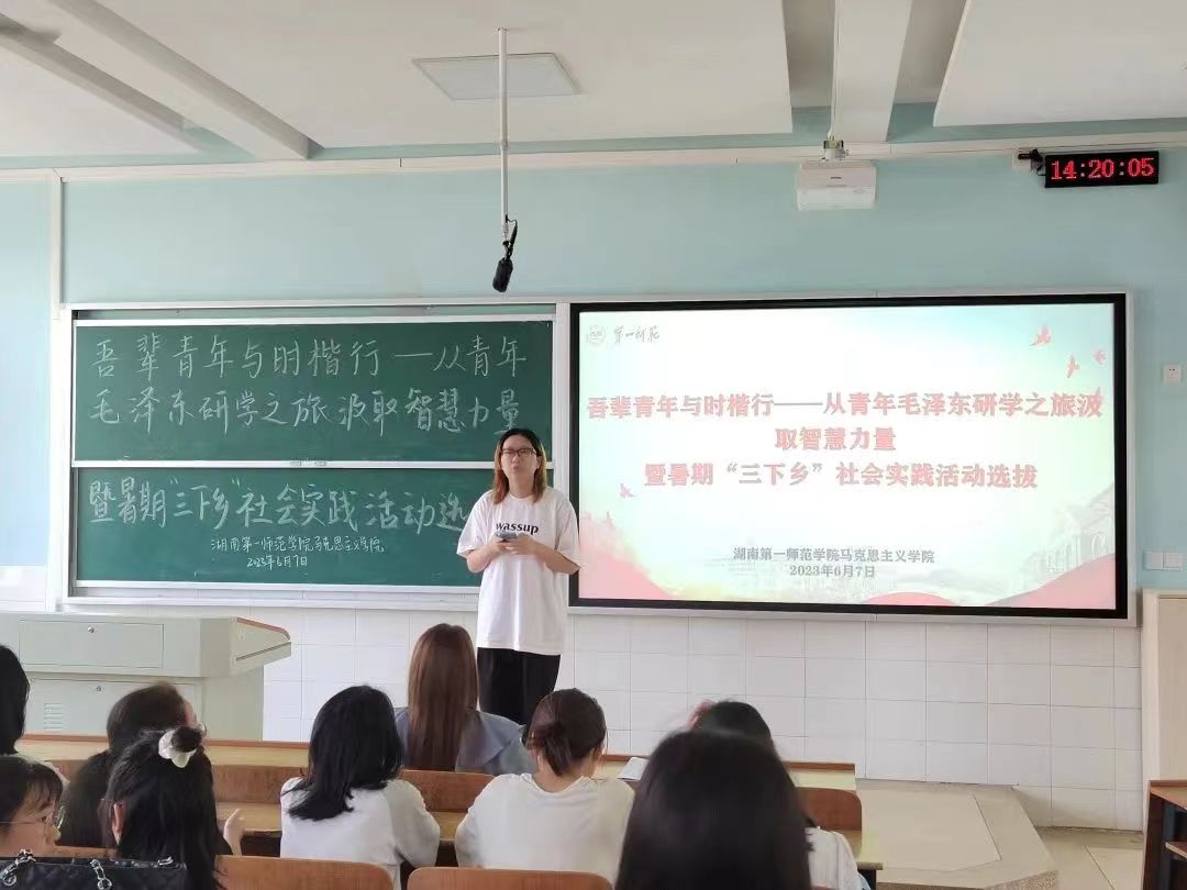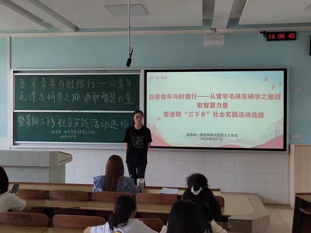 2023年6月7日三亿体育于怀中南302开展了“吾辈青年与时偕行——从青年毛泽东研学之旅汲取智慧力量”老员工暑期“三下乡”队员选拔面试工作。此次选拔面试由三亿体育学工办副主任刘艳霓担任评委,由21级856思政班杨荣同学担任主持。