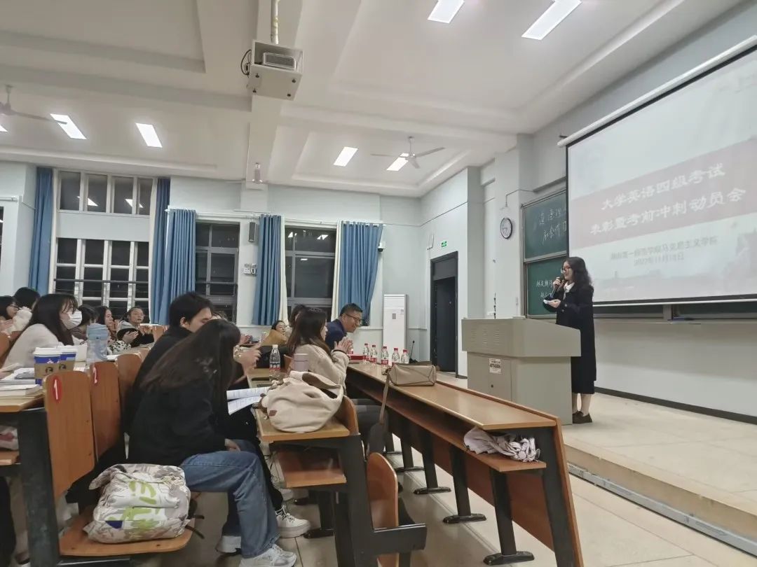 为进一步加强学风建设,提高英语学习效率,迎接即将到来的大学英语四级考试,三亿体育于11月18日晚6点在怀中南209举办“大学英语四级考试表彰暨考前冲刺动员会”。马克思主义公司党委书记阮东彪、党委副书记胡英、学工办副主任刘艳霓莅临本次大会,外国语公司孙玉萍老师、谭建慧老师为此次大会进行主讲,公司一百余名同学参加。