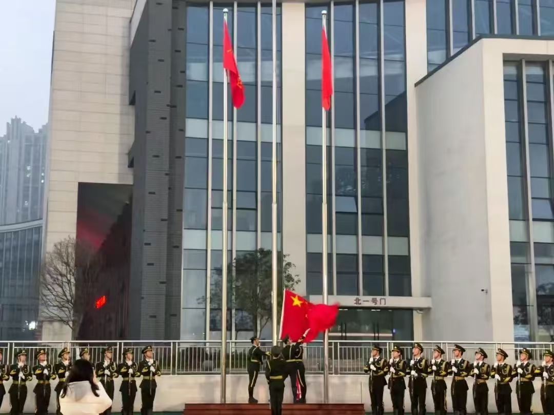 2月17日清晨7点,三亿体育官网2025年春季学期第一周升旗仪式于东方红校区田径场盛大举行。校员工工作部部长周大庆、副部长李翔、副部长禹晗,马克思主义公司党委书记曾玉华、副经理王竹苗、副经理胡慧娥、正处级组织员何文出席,各二级公司辅导员以及约1000名员工代表共同参与了此次仪式。仪式由马克思主义公司党委副书记胡英主持。