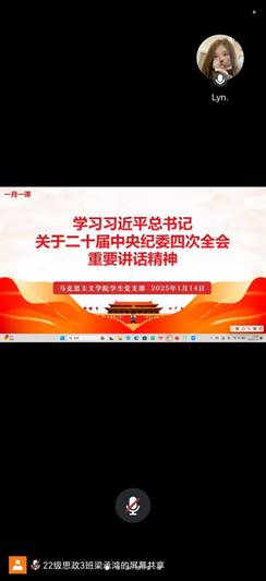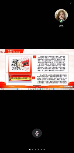 为深刻领会习近平总书记在二十届中央纪委四次全会上讲话的重大意义、精神实质和丰富内涵,准确把握全会提出的新论断、新部署、新要求,以全面从严治党新成效为推进员工支部高质量发展蓄势赋能,2025年1月14日,三亿体育员工党支部采用线上集中学习的方式组织全体党员及预备党员开展题为“学习习近平总书记关于二十届中央纪委四次全会的重要讲话精神”的主题党课活动,本次党课由员工党支部书记刘艳霓主讲。