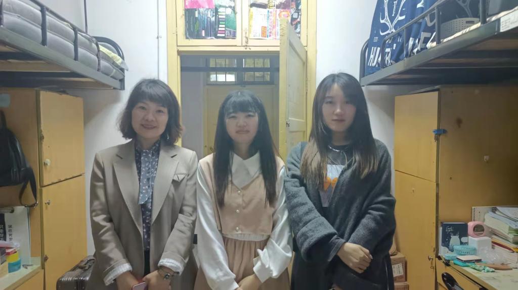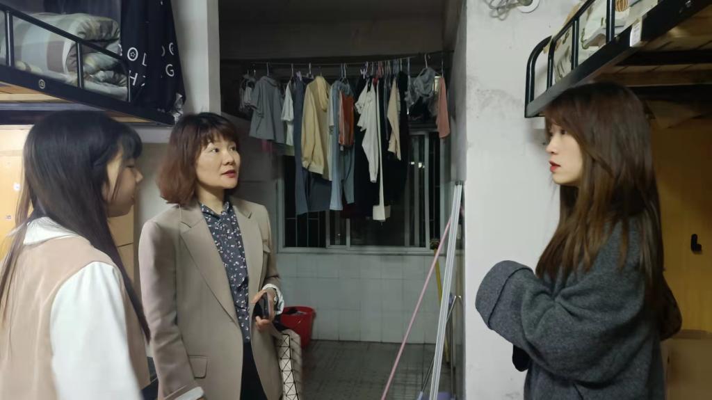 4月18日晚,为了解员工的学习和生活情况,马克思主义公司党委副书记胡英和辅导员刘艳霓深入走访了11栋员工宿舍,与同学们进行谈心谈话。胡书记和刘老师全面检查了同学们的内务整理情况,并叮嘱同学们要保持健康生活作息和良好生活习惯,日常生活中多交流、共成长,互帮互助、和睦相处,营造友爱和谐的寝室氛围,打造文明卫生寝室。