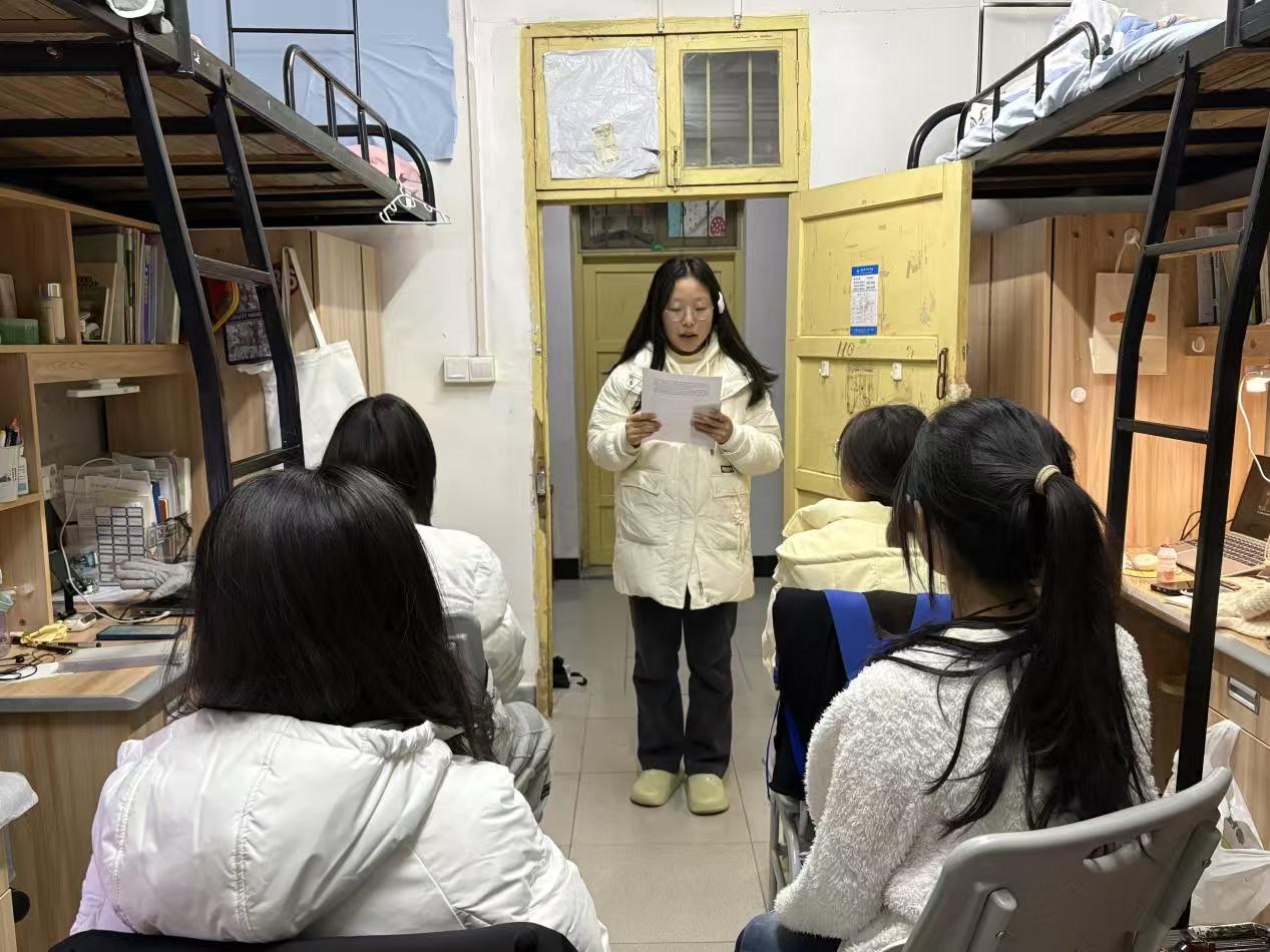 为了帮助同学们舒缓压力,以积极心态应对即将来临的期末考试,马克思主义心育部于12月12日晚上开展了一场以“远离焦虑,助力心‘晴’”为主题的下寝宣讲活动。