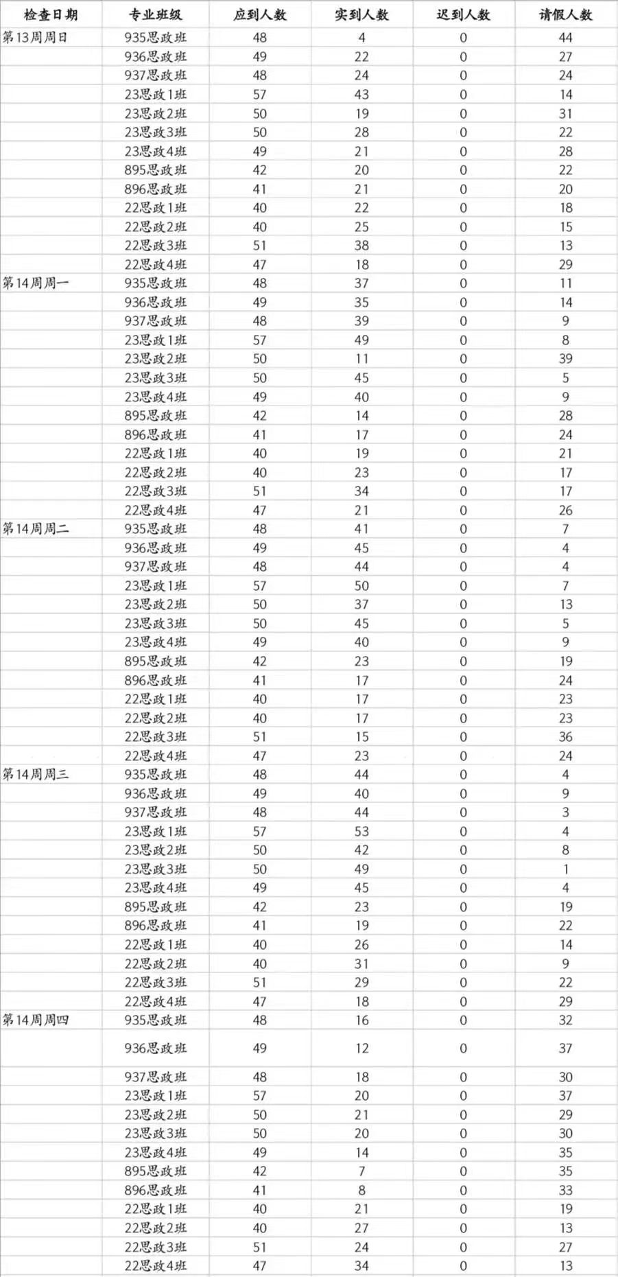 2.少部分同学出现早退情况;
