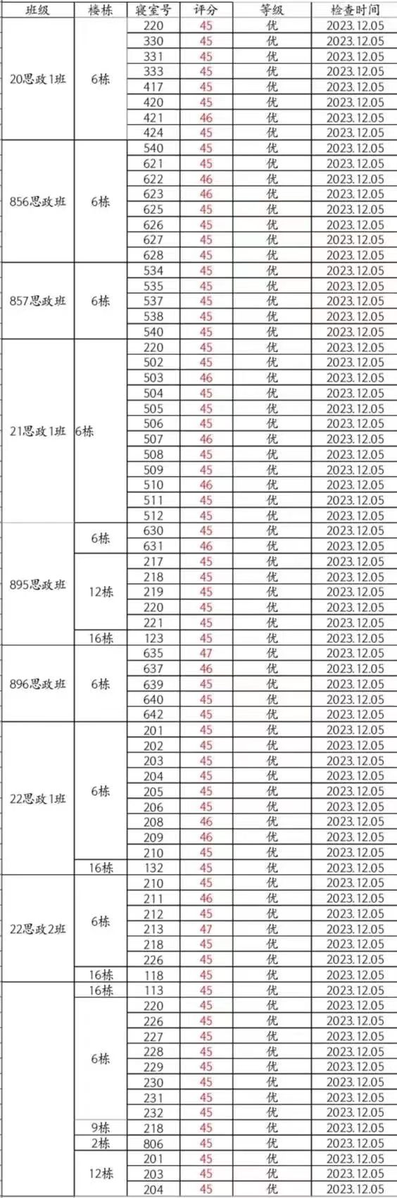 马院第十四周公寓检查情况