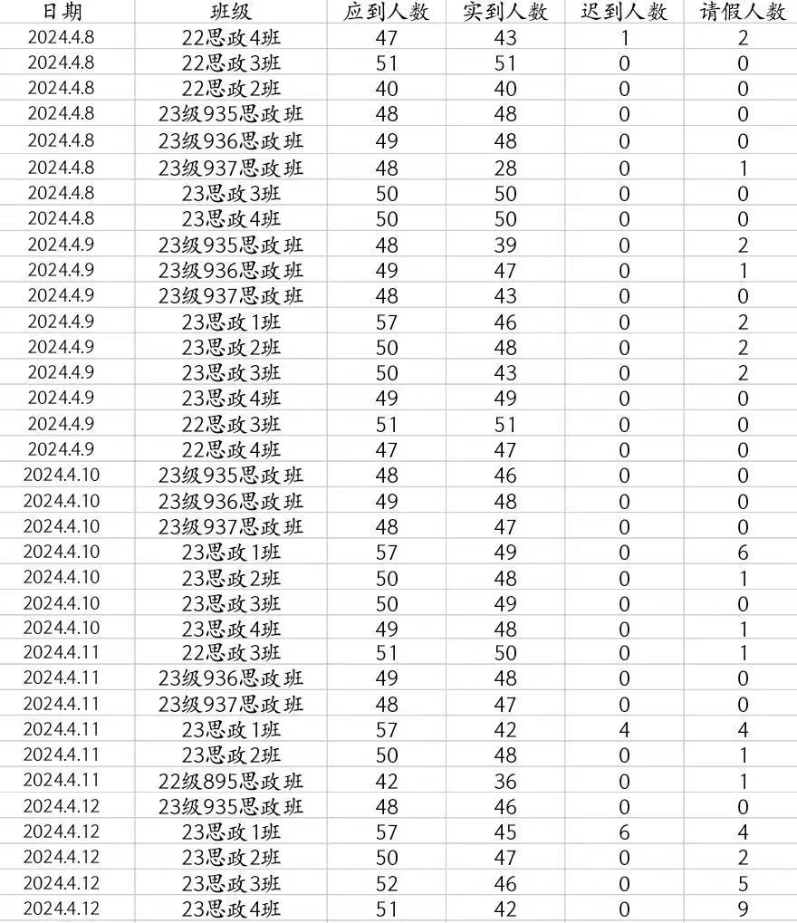 23思政3班旷课:8号金智贤、9号向颜、40号周顺翔、41周家利、42管文博、43吴政航、47盛宇琪、49欧阳文明