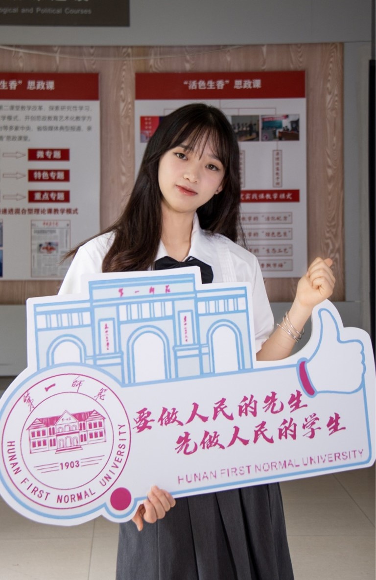 张嘉怡,中共党员,2020级思政1班团支部书记,曾任公司语工心育部部长。国家励志奖学金获得者,在校期间获得一等奖学金、优秀毕业生等校级以上荣誉共计27项。积极参加学术研究和学科竞赛,主持参与科研项目7个,获教育部第六届"我心中的思政课"全国高校微电影比赛优秀奖、湖南省第八届老员工思想政治理论课研究型学习成果展示竞赛决赛一等奖。现已考取湖南大学马克思主义理论专业硕士研究生。
