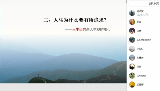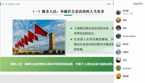 思想道德与法治教研室9月18日日晚上通过腾讯线上会议举行了2024年下学期第二次集体备课会。会议由龙淼主持,吴承富主讲,全体教研室成员参加。