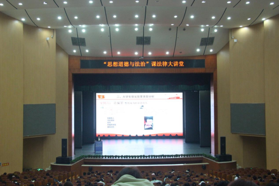 东方红校区“思想道德与法治”课1800余名员工参加讲座,“思想道德与法治”教研室主任吴承富主持了讲座。此次活动增强了同学们法律认识和知法守法懂法的法律意识,大家纷纷表示受益匪浅。